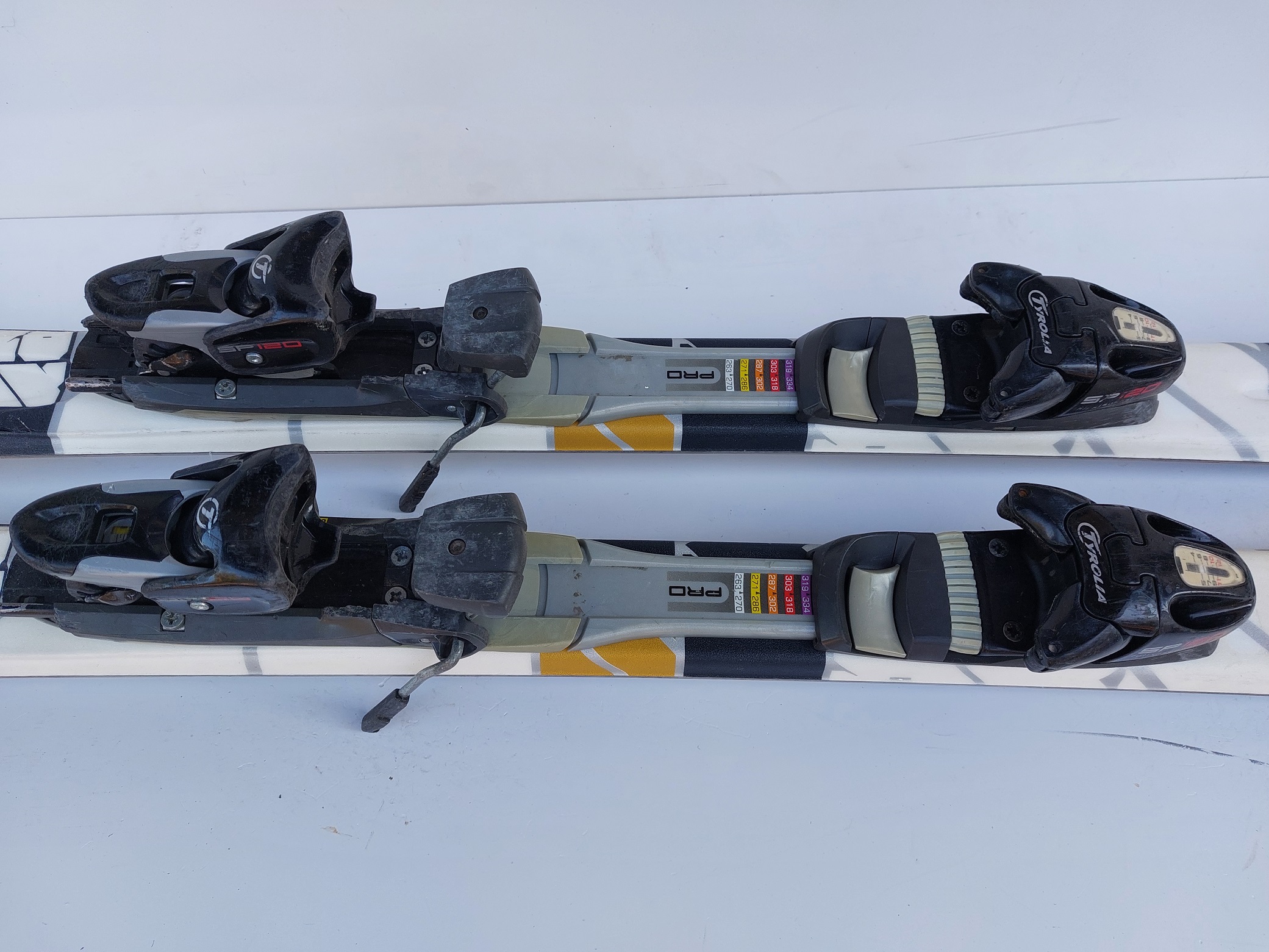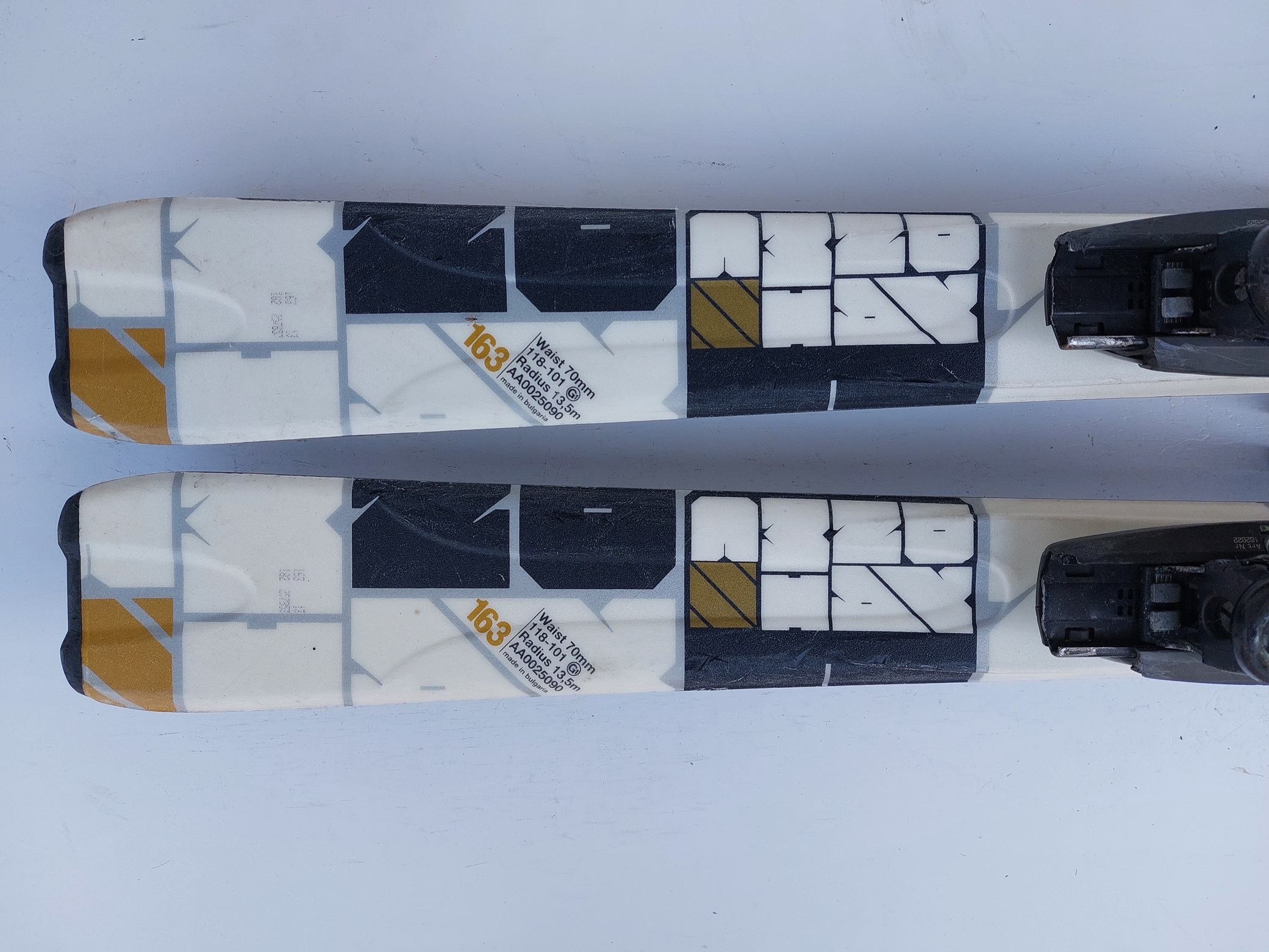 Stav nabízených bazarových lyží k odpovídá jejich ceně a stáří, lyže jsou odborně servisovány. Bazarové lyže mají samozřejmě viditelné známky používání a povrchové a vzhledové poškození, které nemá vliv na funkčnost a kvalitu lyže. Na technický stav lyží poskytujeme záruku 12 měsíců (skluznice, hrany, vázání).